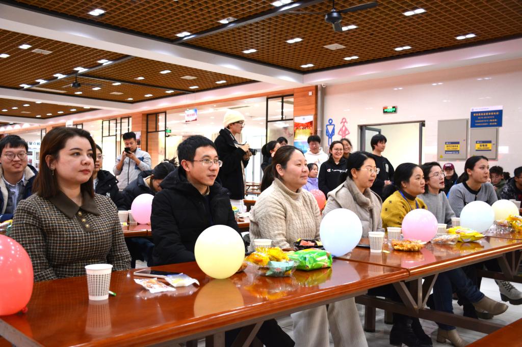 节目表演后,师生们围坐一起边包饺子边话家常。擀饺皮、包饺子、话友情,大家分工配合,各展其能,时不时还相互切磋包饺子的技法,看着餐盒里一排排的饺子,有大有小,有扁有圆,形状各异……现场气氛愉悦融洽,每个人脸上都洋溢着开心的笑容。最后,大家一边品尝着自己动手做的水饺,一边分享着自己此次活动的心得经验和相聚乐趣。