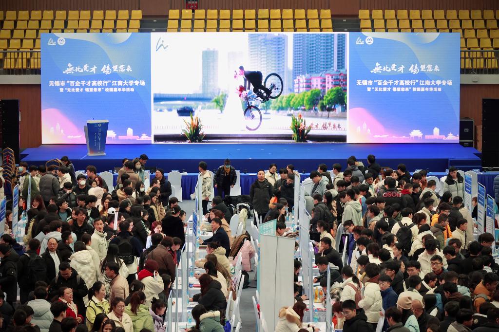 3月1日,由中共无锡市委、无锡市人民政府和我校共同主办的无锡市“百企千才高校行”江南大学专场暨“无比爱才 锡望您来”校园嘉年华活动在校体育馆隆重举办。无锡市委常委、组织部部长高飞,校党委书记吴正国,副市长周文栋,校党委常委、副校长倪松涛,市委副秘书长、市人力资源和社会保障局党委书记、局长张映雪,市科技局党组书记、局长赵建平等出席活动。我校教授代表、学生代表及无锡学院、无锡太湖学院等高校师生代表参加活动。
