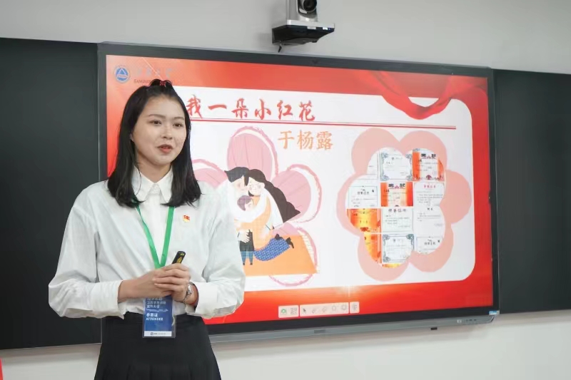 于杨露,化学与材料工程学院2021级应用化学专业本科生。大学期间她先后担任班长、副班主任、校学生会主席等职务,连续两年获得国家励志奖学金,多次获得校综合奖学金、企业奖学金。她从“一间小屋子”做起,带动宿舍四人共同进步,成为了所在学院年级唯一全员党员宿舍;作为班长带领班级获得“江苏省先进班集体”荣誉称号。她加入“校励志成才宣讲团”,向120多名同学讲述自己的成长之路;作为省青马工程学员,开展覆盖300多名学生的“资助育人,护航成长”主题培训;开设“资助小课堂”,对妇联部门举办的暑期托管班儿童和特殊教育学校困难儿童进行小班化教学;进行“新生云家访”,一对一为“准大学生”解答资助政策;打造“益心壹意”校园专栏,带领校学生会收集困难学生问题;依托学院“知行化语”成长沙龙朋辈帮扶平台,主动分享自己的学习经验,帮助困难同学成长成才。她既是受助者也是助人者,在“角色转换”中收获爱、传递爱、成为爱,温暖了“大学生+高中生+特殊教育群体+困难家庭儿童”等多层次人群,实现了“1+4+31+120+300+n”的辐射效果,让资助宣传之路“一路生花”。