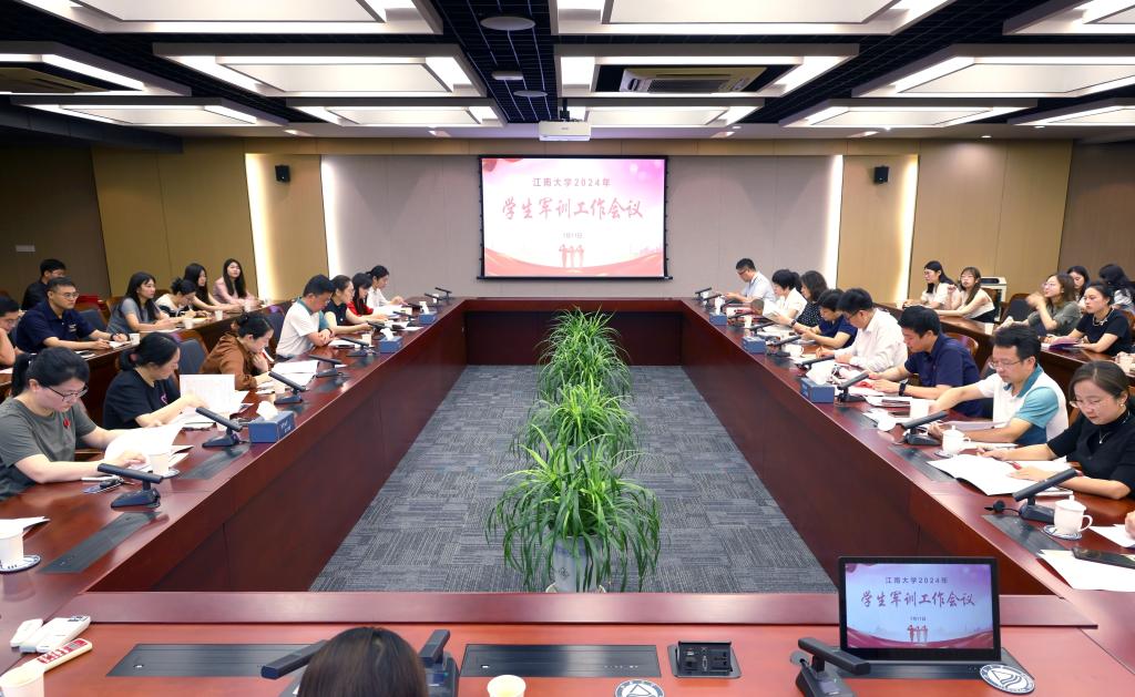7月11日上午,江南大学2024年学生军训工作会议在行政楼B307会议室召开。校党委常委、副校长倪松涛、校国防教育工作领导小组成员单位领导、各学院党委副书记、带训辅导员、2023年度国防教育工作先进集体代表、先进工作者参加会议,会议由人民武装部副部长俞立峰主持。