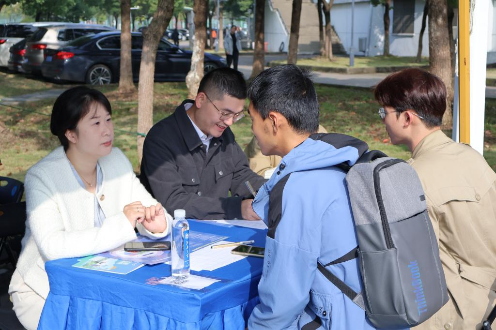 校党委书记吴正国,校党委常委、副校长倪松涛,校学生工作处、社会合作与校友联络处等部门以及各学院负责人来到招聘会现场。在展位前,校领导详细询问了用人单位招聘情况及就业服务工作的建议,并对社会各界对学校人才培养和就业服务工作的大力支持表示感谢。吴正国与毕业生们交流就业意愿和职业规划,他希望同学们要积极响应“服务新质生产力”的号召,将个人成长融入国家、社会发展的大局之中,不断提升自己在科技创新、数字经济、绿色能源等前沿领域的专业技能,努力成为一名优秀的复合型人才。活动现场,各学院书记院长带着系部主任、专业老师一起前往招聘会现场,化身求职推荐官,为学生现场投递简历推荐工作,争取求职机会。