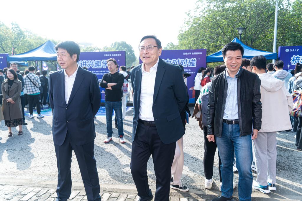校党委书记吴正国,校党委常委、副校长倪松涛来到蠡湖校区活动现场,与工作人员、参与学生亲切交谈,深入了解活动组织开展情况。吴正国指出,生涯教育是以长线就业为导向的育人工作,首届生涯嘉年华活动的举办是学校生涯规划课堂的有效延伸,希望相关部门和学院在职业生涯教育中持续探索与实践,以高质量充分就业为目标,有计划、有组织地实施生涯教育;鼓励同学们要以本次活动为契机,勇敢探索自我,明晰职业方向,做好学业和职业规划,为未来做好全面准备。