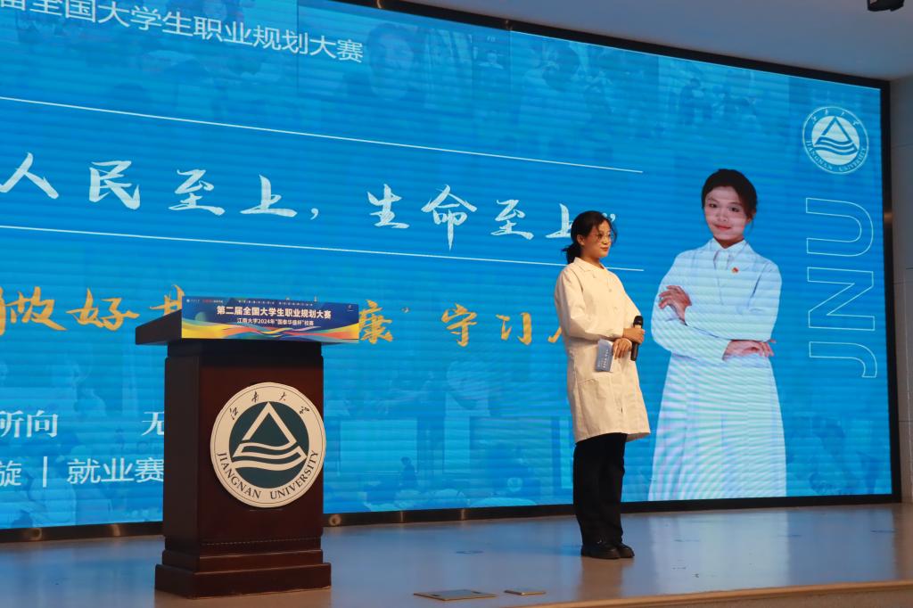 大赛分为成长赛道和就业赛道。成长赛道10位选手围绕职业目标、学习实践、动态调整等方面充分展示了各自的职业生涯目标和坚实的成长路径;就业赛道9位选手围绕职业目标、岗位胜任力、发展潜力等方面全面而生动地展示自身的求职实战能力和对岗位的深刻思考。选手们将个人理想与国家需要、经济社会发展紧密结合,充分展现了江南学子积极进取、努力奋斗的精神面貌和到祖国最需要地方建功立业的家国情怀。评委们根据每位选手的展示内容,进行了针对性的提问,并从情怀价值呈现、职业规划内涵、语言表达细节等方面给予改进意见和建议,为选手们提供了宝贵的指导和启发。