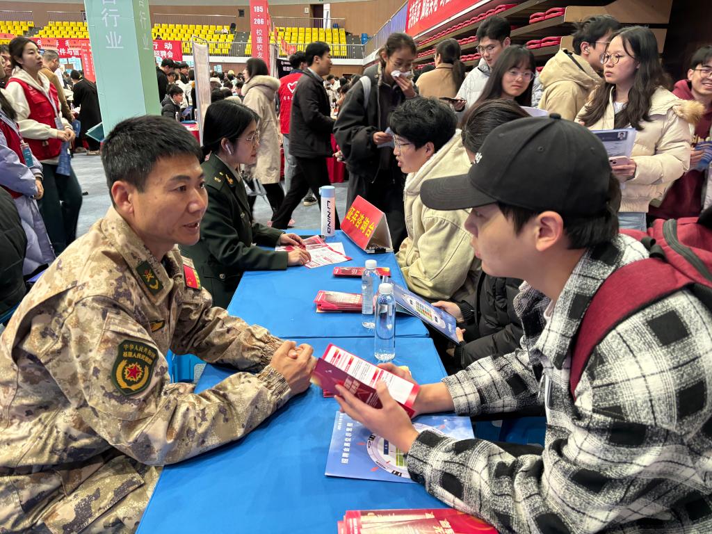高校是军队优质兵员的战略储备基地,为鼓励毕业生积极参军入伍,提高兵员征集质量,本次征兵宣传抓住招聘会上毕业生人数众多的契机,现场开展政策宣讲、发放征兵宣传手册,为有意向的同学提供征兵入伍政策的相关答疑,鼓励毕业生积极应征报名。现场气氛热烈,咨询的同学络绎不绝,有多名毕业生表达了毕业后应征入伍的意向,人武部工作人员进行了信息登记,并为同学们讲解了相关后续流程。