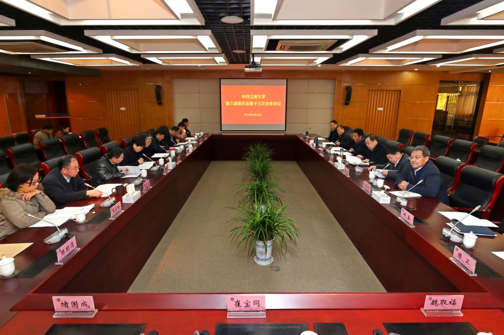 3月13日,中共江南大学第三届委员会第十三次全体会议在行政楼B307会议室召开。校第三届党委委员等参加会议,会议由校党委副书记、校长陈坚主持。