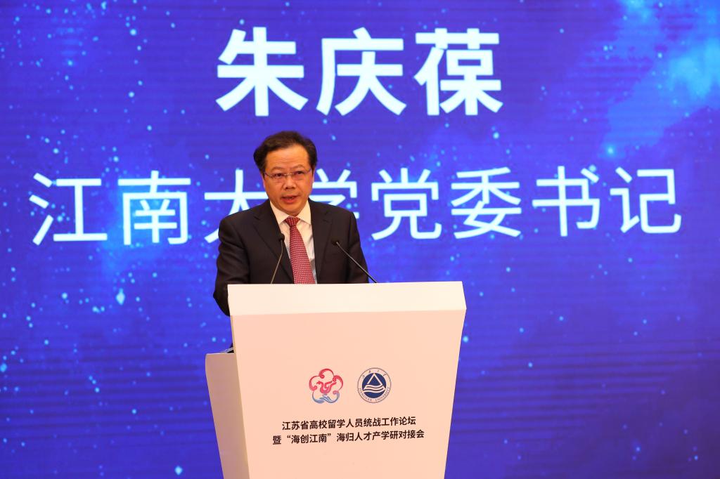 论坛开幕式,江南大学党委书记朱庆葆致欢迎辞,他指出要发挥统战工作优势,吸引聚合海归人才资源。把“科学家”和“企业家”联合起来,把“技术”与“资本”联结起来,把“实验室”与“工厂”联动起来,激发创新创业活力,拓展创新创业深度。探索大江南区域产学研协同发展策略,积极投身长三角区域一体化国家战略。
