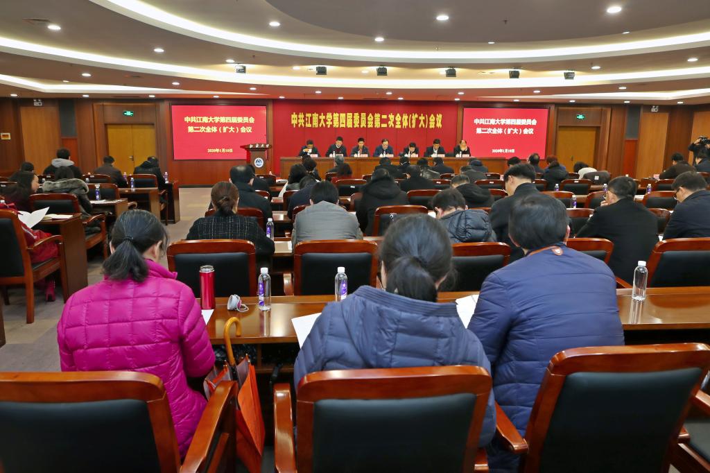 1月10日下午,中共江南大学第四届委员会第二次全体(扩大)会议在图书馆五楼报告厅召开,校党委委员、纪委委员、校领导、中层正职领导干部、民主党派校基层组织主要负责人等参加了会议。会议由校党委书记朱庆葆主持。