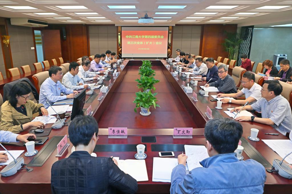 9月18日上午,中共江南大学第四届委员会第三次全体(扩大)会议在行政楼B305会议室召开,校党委委员、纪委委员参加会议。会议由校党委书记朱庆葆主持。