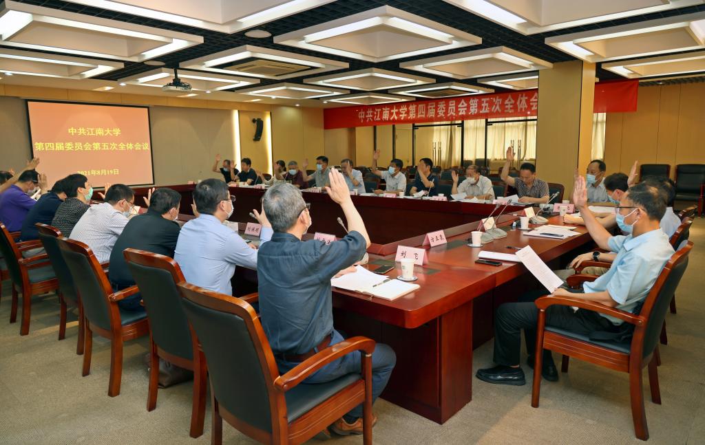 随后,与会党委委员认真审阅、讨论了学校“十四五”规划纲要,委员们积极发言,从规划的战略性、前瞻性、科学性、可操作性等方面提出了建设性意见和建议,并以举手表决方式予以审议通过。全会还一致通过了《中共江南大学第四届委员会第五次全体会议决议(草案)》。