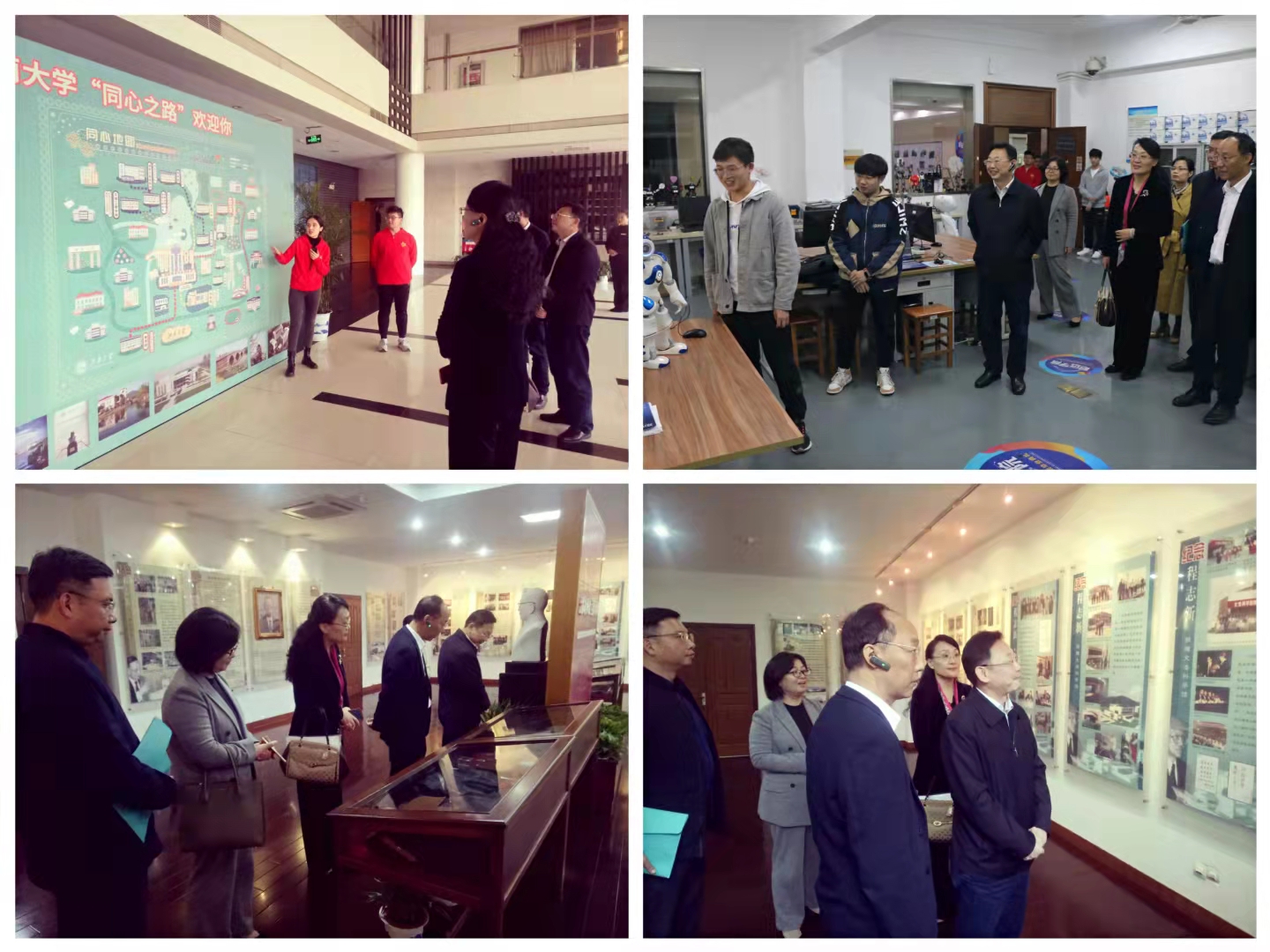 考察组一行首先实地考察了学校同心教育实践基地——“同心之路”的部分线路和站点,先后参观了以荣毅仁纪念馆、程志新陈列馆、君远学院为代表的“实业报国之路”,以及以钱绍武艺术馆为代表的“教育兴国之路”,车览了“科技强国之路”和“民族团结之路”。