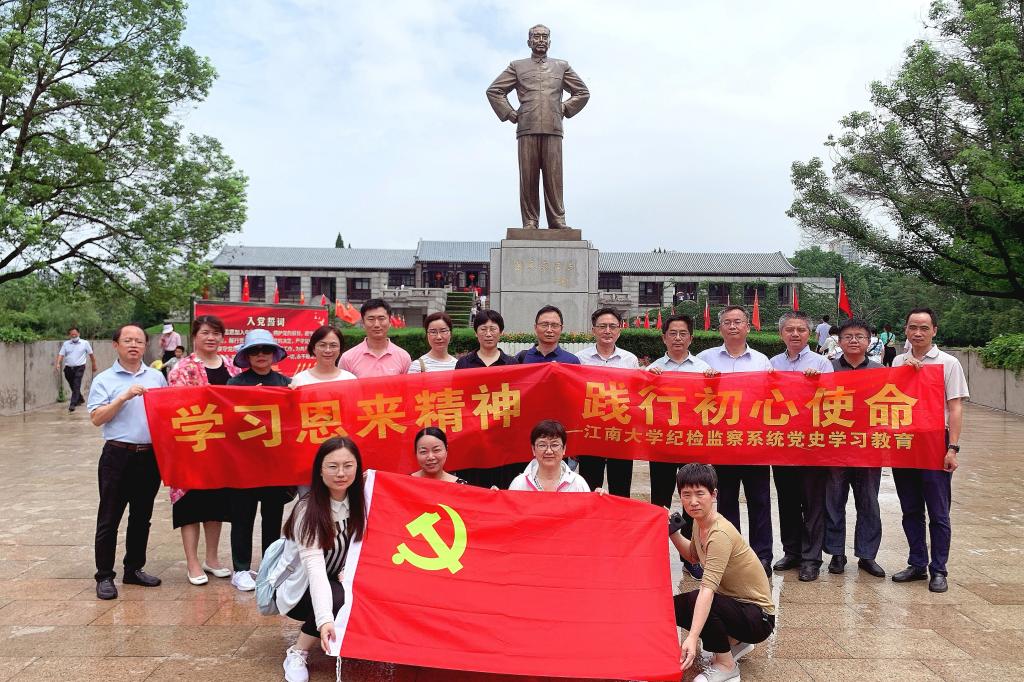 为庆祝中国共产党成立100周年,扎实推进学校纪检监察系统党史学习教育,7月16日至17日,校党委副书记、纪委书记刘淼同志带领部分校纪委委员、二级党组织纪检委员和纪监巡党支部党员,赴江苏淮安恩来干部学院开展“学习恩来精神、践行初心使命”专题培训。
