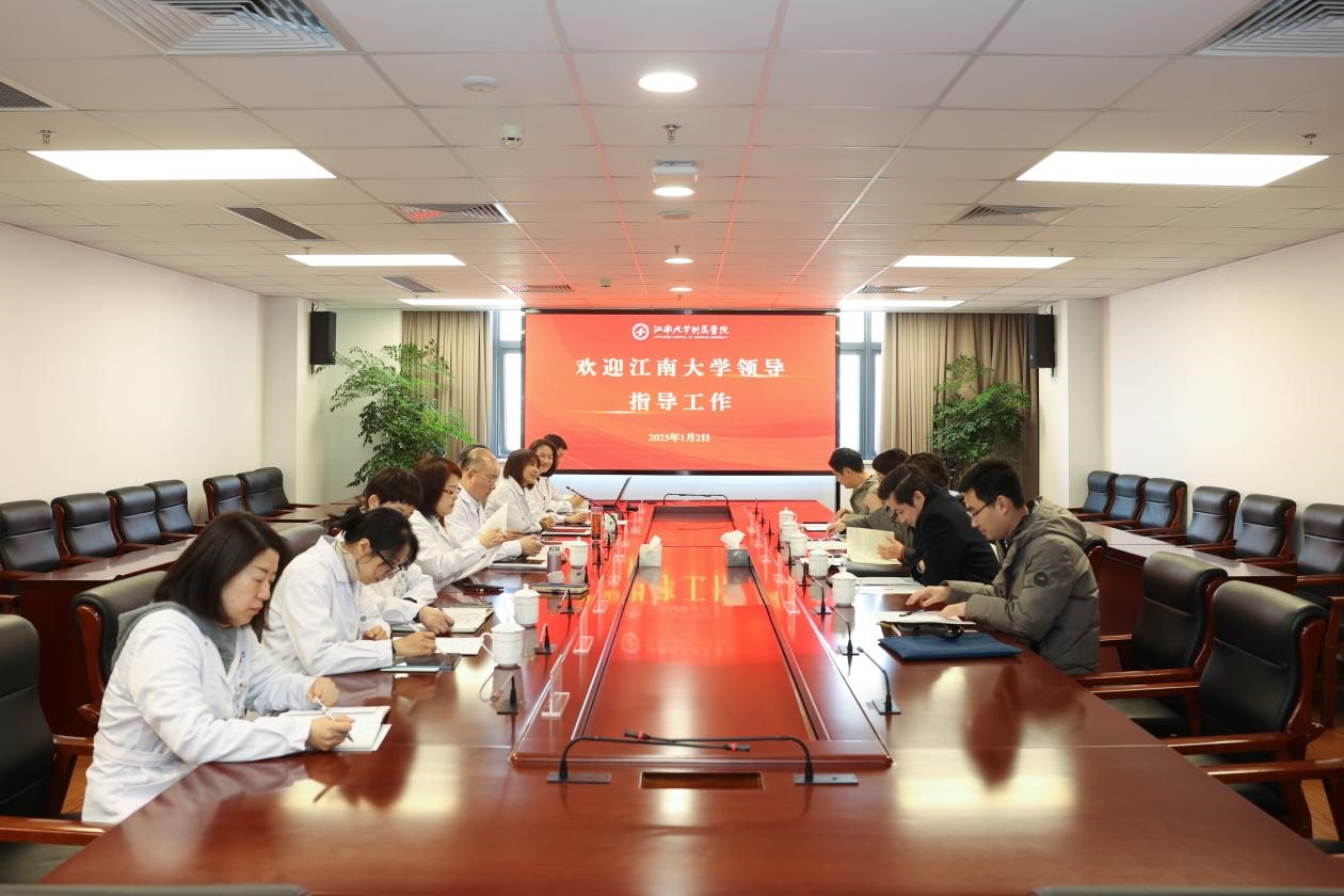 2025年1月2日,江南大学党委副书记、纪委书记李旸,党委常委、副校长马鑫,纪委副书记魏静、纪检监察机构、校长办公室相关同志一行赴江南大学附属医院走访调研。江南大学附属医院党委书记过栋,党委副书记、院长过忆,副院长曹宏,纪委书记、监察专员刘波及党办、纪监办、监督检查室、审查调查室及行风办等相关部门负责人参加调研。