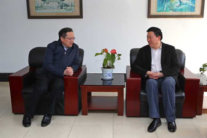 校党委书记朱庆葆与无锡市委常委、市总工会主席陈德荣会谈