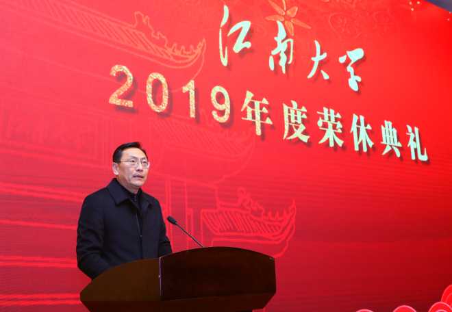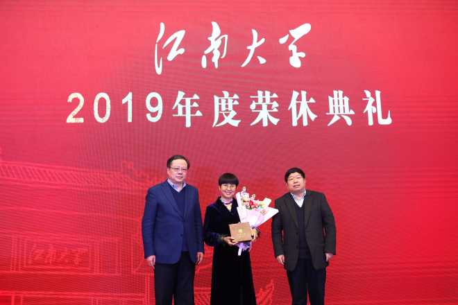 1月3日下午,江南大学2019年度教职工荣休典礼在远东报告厅隆重举行。校党委书记朱庆葆、校长陈坚、副校长吴正国等出席了典礼,2019年度退休教职工、各学院(单位)党政领导、各职能部门主要负责人、分工会主席、青年教职工代表等参加了典礼。