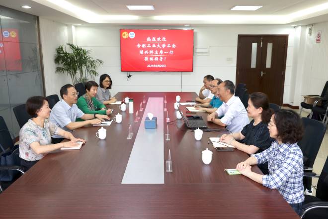 6月20日,合肥工业大学校工会主席胡兴祥等一行来我校开展调研交流,交流座谈会在行政楼B304会议室举行。校党委常委、工会主席朱飞,校工会副主席李红、校工会副主席张才兴、商学院分工会主席赵海蕾、人工智能与计算机学院分工会主席夏鸿斌等出席座谈会。