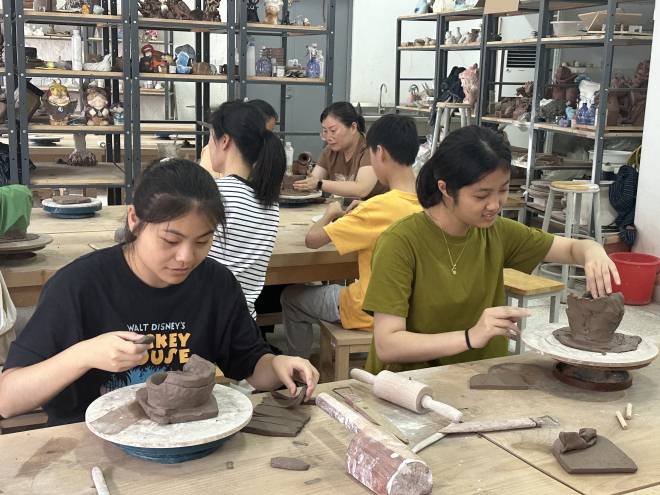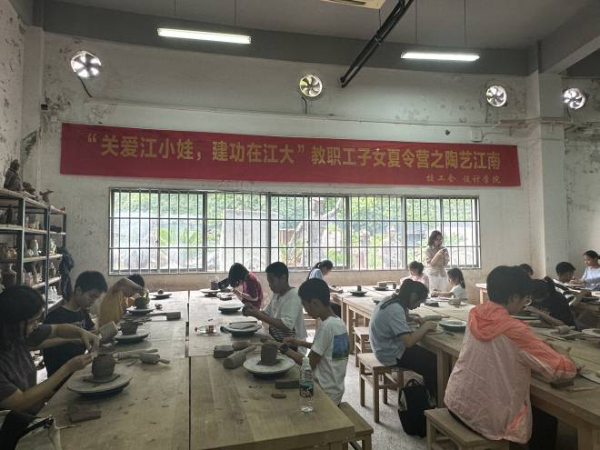 7月2日下午,“关爱江小娃,建功在江大”教工子女2024夏令营系列活动之陶艺江南活动在江南大学陶瓷艺术中心陶艺展厅如期举行。此次活动吸引了众多教职工初、高中子女参与,现场气氛热烈,孩子们齐聚一堂,共同感受陶艺这一“火与土的艺术”所散发的独特魅力。