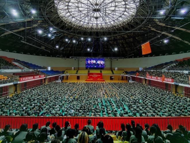 活动最后,在江南大学新生代表带领下,全场师生共同唱响《我和我的祖国》,激昂的歌声不仅是对祖国的深情告白,也表达着新时代青年学子对祖国的无限热爱和对实现中华民族伟大复兴历史使命的坚定信念。