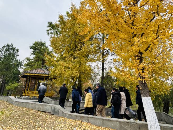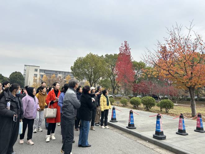 活动当日,阳光灿烂,微风轻拂。校园中红黄色的枫叶、金黄耀眼的银杏叶与青翠逼人的松柏相互交织,构成了一幅幅美轮美奂的画卷。众人一边沉醉于美景之中,一边拍照留念,欢声笑语此起彼伏。在徒步进程中,协会特邀原学校绿化总工程师李云侠教授担任植物向导,为大家介绍校园内各类植物的名称、习性以及生长环境,和自己多年从事校园绿化工作的感悟心得。生动且富有趣味的讲解使教职工们对校园植物有了更深刻的认识,也激发了大家对校园文化的热爱。大家一致表示,这样的活动既锻炼了身体,又加深了友谊,希望未来能够多组织类似活动,让教职工们在繁忙的工作之余,尽情享受生活的乐趣。