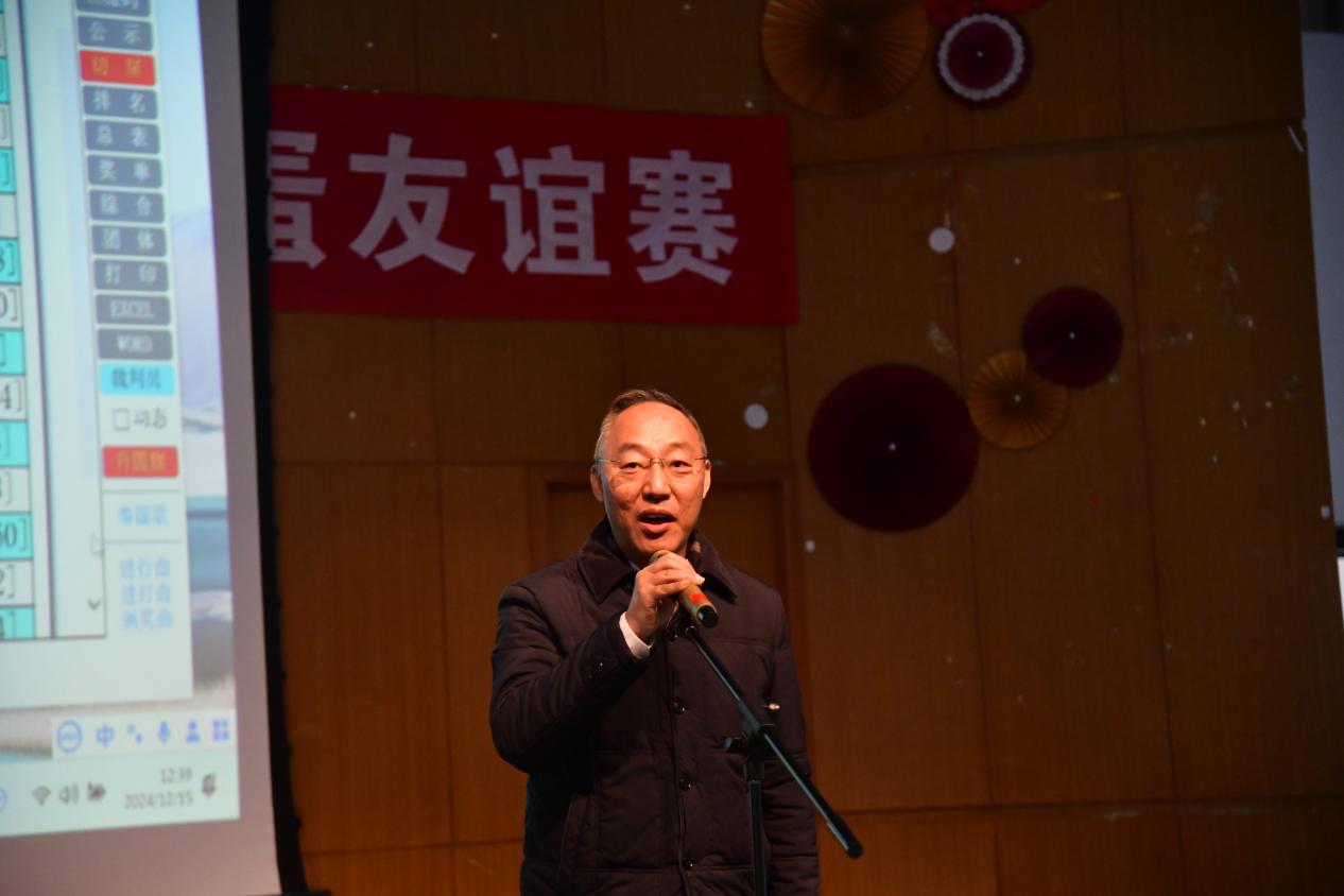 接着,校棋牌协会会长徐玉生上台发言,诚挚感谢学校各方支持,向参与活动的教职工表达敬意,鼓励大家放松心情,发挥最佳水平,在比赛中收获愉悦与成绩,开启协会新一年精彩活动。