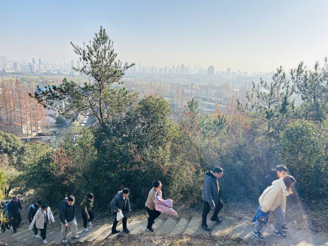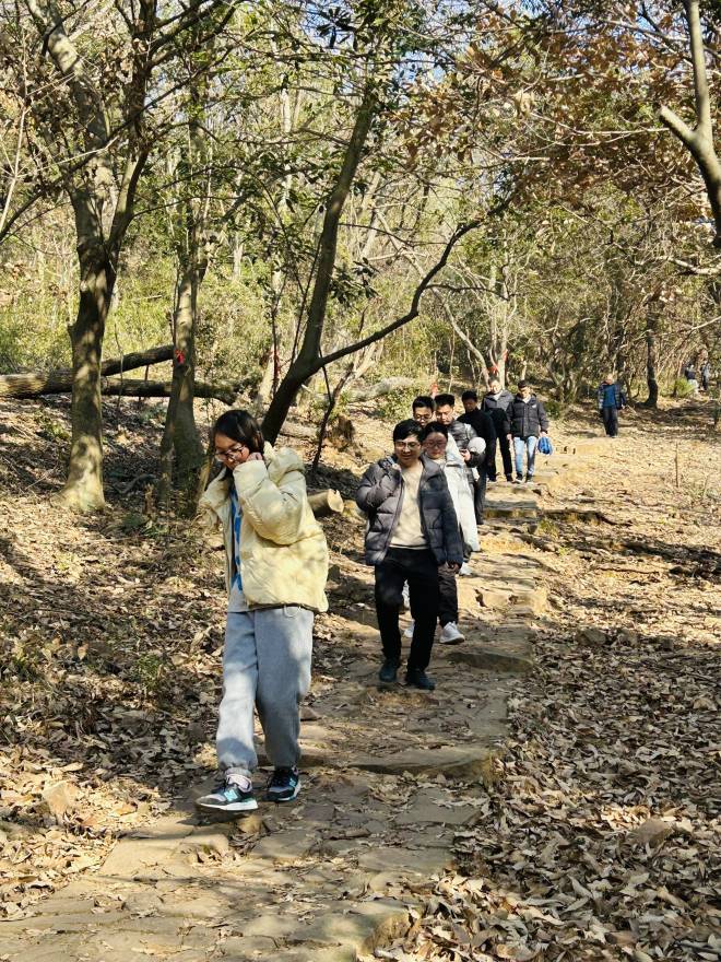 活动沿途风景如画,让人流连忘返,而且挑战与乐趣并存,为老师们带来了难忘的体验。路线累计爬升高度达280米,既考验了老师们的体力与耐力,又让大家在攀登的过程中感受到了成就与满足。在行进过程中,老师们身姿矫健,精神焕发。一边享受着大自然的馈赠,呼吸着山间清新的空气,一边与同事交流互动,分享着新年的喜悦与期待。沿途的自然风光在他们的脚下缓缓展开,让人心旷神怡。