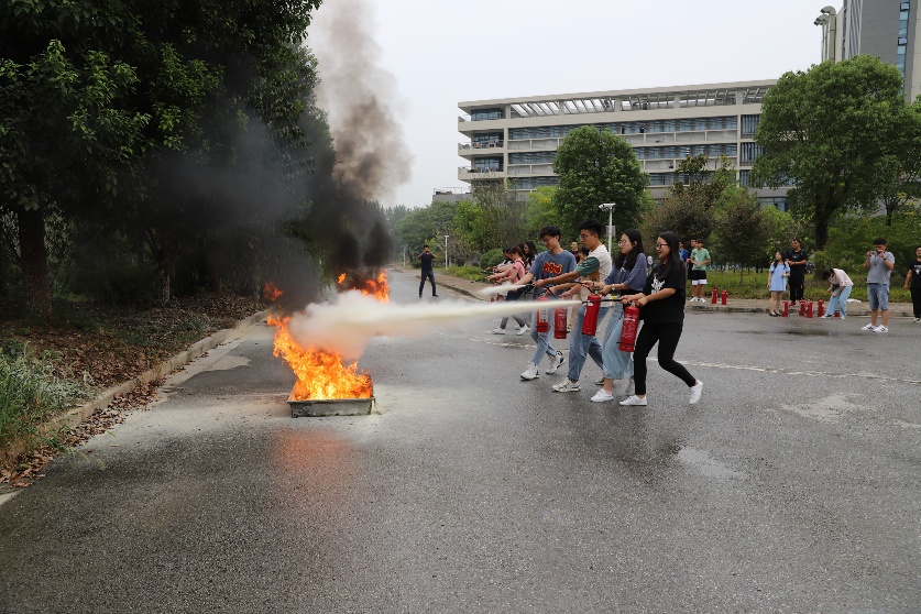 最后,全体人员在创新大楼前进行了消防演习活动,在保卫处消防科指导下,实地操作灭火器灭火,了解掌握灭火的处理流程,增强人员突发事件中互救、自救意识,提升相互间协调配合能力。