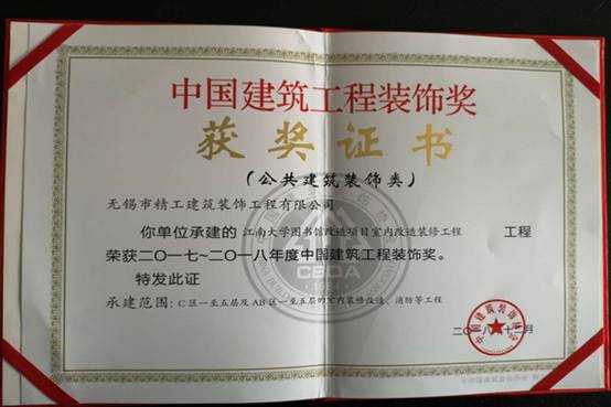 近日,从中国建筑装饰协会获悉,我校图书馆改造项目室内改造装修工程荣获“中国建设工程装饰奖”,同时该工程项目还获得江苏省优质工程奖“扬子杯”。
