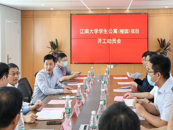 5月25日下午,江南大学学生公寓(橙园)项目开工动员会在施工现场举行,校长陈卫出席会议并宣布橙园建设项目正式开工。出席会议的还有校党委副书记戴月波,学生工作部(处)、审计处、后勤管理处、基建处、保卫处、信息化建设与管理中心等相关部门负责人及各参建单位代表。会议由基建处处长周伟涛主持。