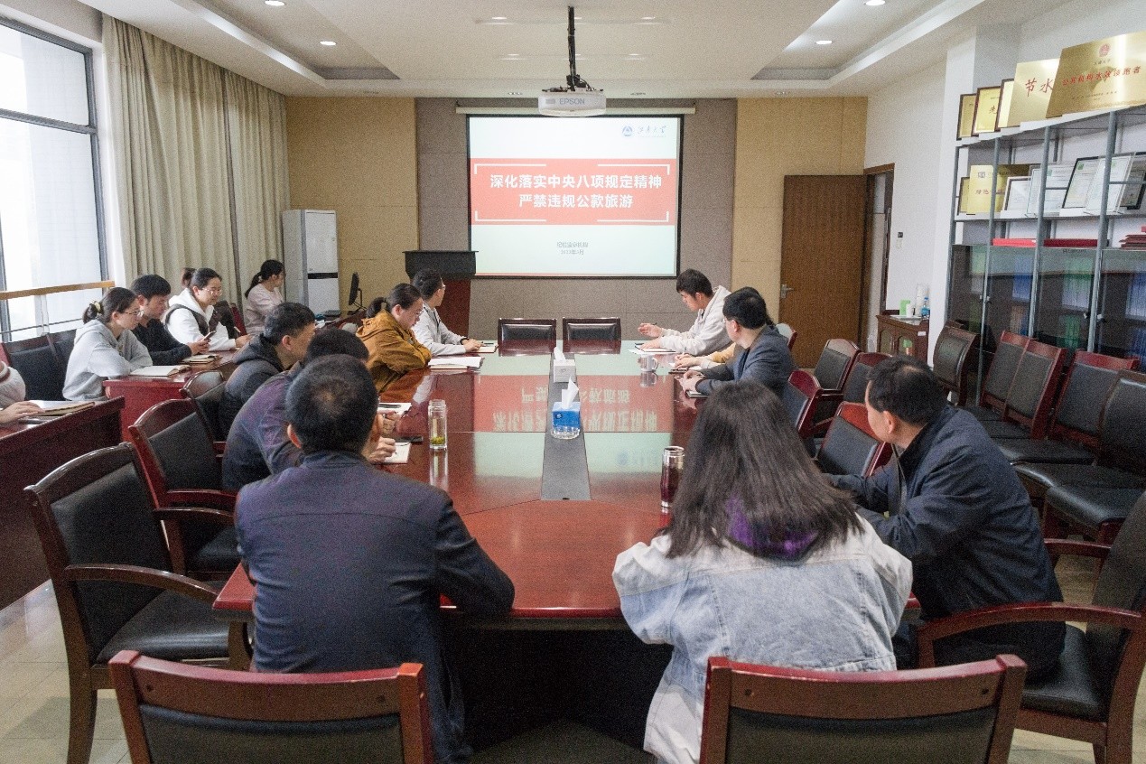 党支部纪检委员张明亮就“深化落实中央八项规定精神 严禁违规公款旅游”相关工作进行了宣讲,他从上级精神、典型案例、纪法分析三个方面,进一步理清了政策边界、明确了纪法要求、进行了警示教育。他强调,整治借培训考察之名公款旅游问题是2023年全面从严治党重点工作,全体领导干部、党员、教职工要从发扬彻底的自我革命精神的高度来开展自查自纠工作;中央八项规定精神是长期有效的铁规矩、硬杠杠,我们必须一抓到底、一刻不松。