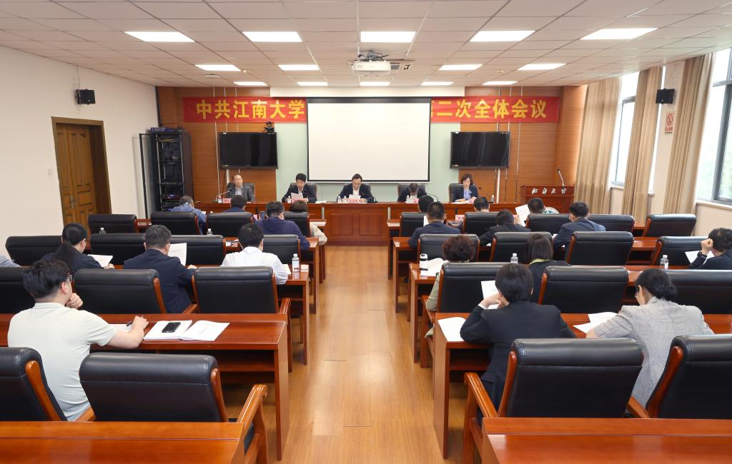 会上,校党委常委、副校长顾正彪作《江南大学贯彻落实〈教育强国建设规划纲要(2024—2035年)〉行动方案》的编制说明;校党委副书记、纪委书记李旸部署迎接、配合教育部党组巡视学校党委有关工作;校党委副书记倪松涛宣读《中共江南大学第五届委员会第二次全体会议决议》。与会人员围绕上述议题展开讨论,审议通过《江南大学贯彻落实〈教育强国建设规划纲要(2024—2035年)〉行动方案》以及《中共江南大学第五届委员会第二次全体会议决议》。