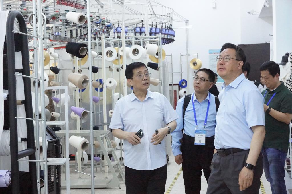 报告结束后,王中林莅临纺织科学院工程学院进行座谈交流。付少海从学科发展历史、师资队伍、科研团队等方面介绍了学院现状,分享了学院在搭建跨学科平台、推动成果产业化方面的实践经验,为未来深化合作提供了重要参考。随后参观了针织技术教育部工程研究中心,蒋高明介绍了智能纺织材料的最新研发进展,充分展现智能制造对传统纺织产业的革新力量。