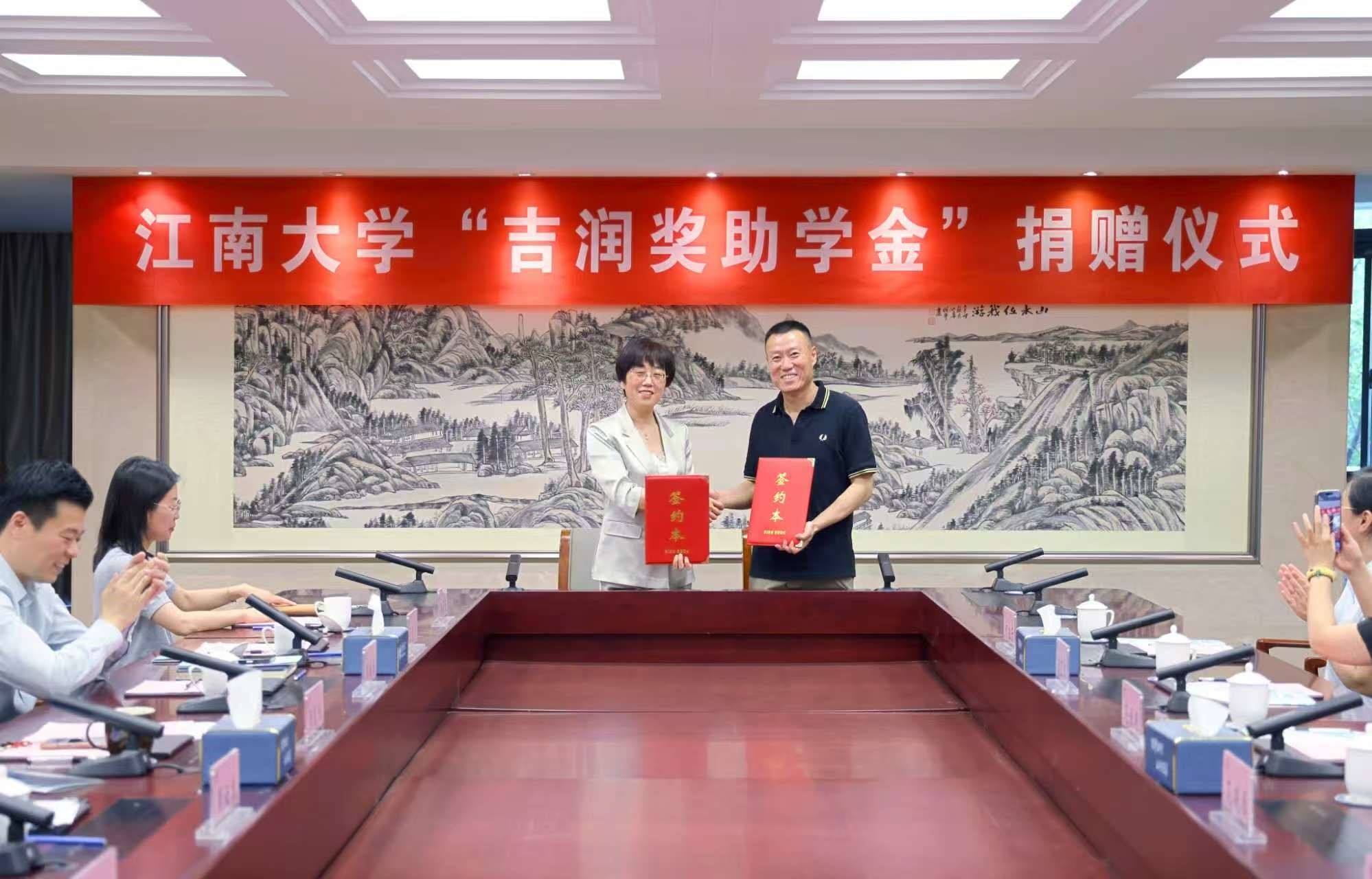 5月12日,江南大学与无锡市吉润国际贸易有限公司在行政楼B305会议室举行第二轮“吉润奖助学金”捐赠签约仪式。无锡市吉润国际贸易国际有限公司董事长范恒明、副董事长范晓雁携企业代表,江南大学党委常委、副校长张影陆,学生工作部(处)部(处)长周伟涛、社会合作与校友联络处处长周云龙、教务处副处长黄锋林,纺织科学与工程学院党委书记张菁燕及副书记、副院长杨莉勤出席活动,周云龙主持签约仪式。