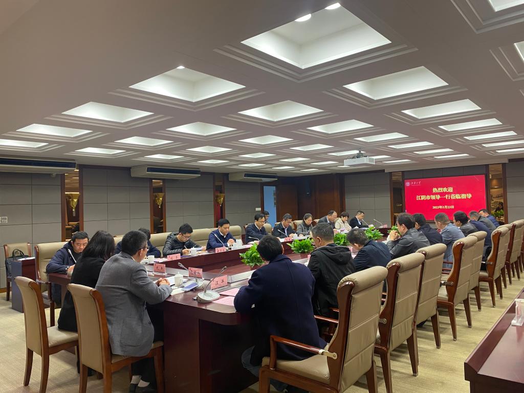 3月23日上午,江阴市委常委、常务副市长王琪,江阴市副市长杭成,江阴市人民政府党组成员、江阴霞客湾科学城党工委书记、管理办主任祁军,率江阴市委编办、政府办、教育局、财政局、住建局、青阳镇、霞客湾科学城党工委等一行来校调研交流。我校党委副书记戴月波,党委办公室、校长办公室、学生工作处、党委教师工作部、发展规划与学科建设处、人力资源处、财务处、后勤管理处、实验室与资产管理处、基建处等主要负责人参加座谈交流。会议由党委办公室主任王维主持。