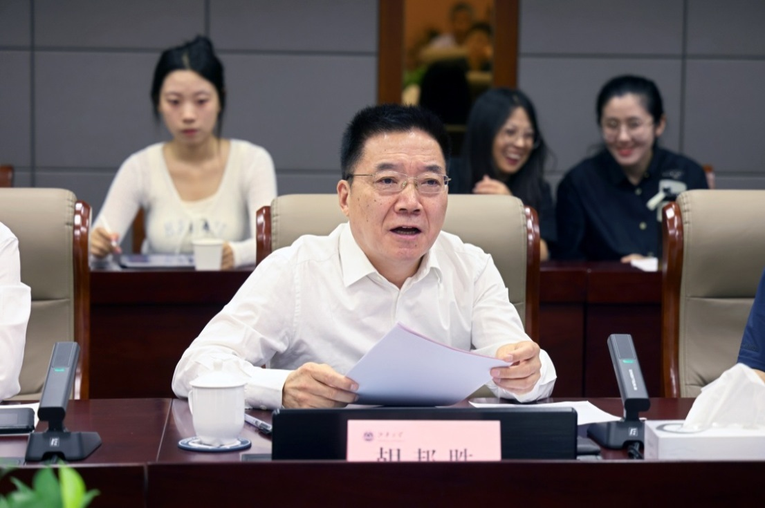 朱庆葆对胡邦胜一行表达了热烈欢迎,并介绍了江南大学的历史沿革、学科特色、目前学校文科建设情况及未来发展愿景。他指出,面对新时代新文化现象,要向下扎根、向上生长,发挥高校优势,抢抓发展热点。