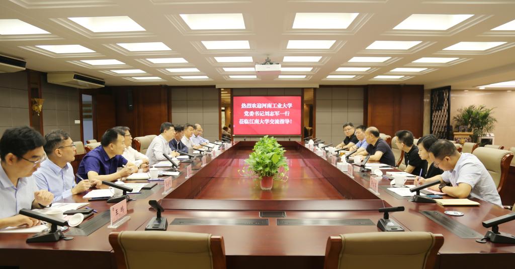 9月20日,河南工业大学党委书记刘志军带队,校纪委书记张玉安,原副校长陈复生,校长办公室、党委办公室、发展规划处、科技处、学科建设办、产业技术研究院等负责人一行来校交流调研。中国工程院院士、校长陈卫出席接待,并就进一步加强两校合作进行交流。之后在行政楼B305会议室召开座谈会,校党委常委、副校长顾正彪,校长办公室主任黄敏,产业技术研究院院长王立,党委办公室副主任杨飏,发展规划与学科建设处副处长王统斌,科学技术研究院副院长樊启高出席。会议由黄敏主持。