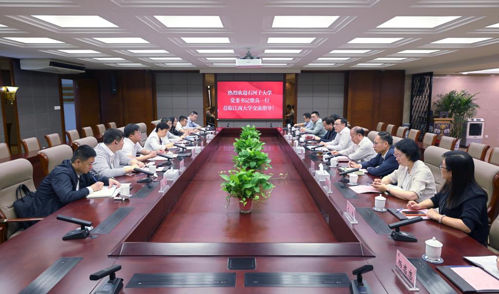 吴正国对柴真一行的到来表示热烈欢迎。他表示,江南大学与石河子大学的对口合作至今已有18年,期间携手前行、共谋发展,取得了扎实成效,也结下了深厚友谊。两校前期在挂职干部选派、师资队伍建设、学科建设、学生联合培养等多个维度开展合作,实现了互利共赢,下一步学校将继续发挥自身优势,结合石河子大学发展特色与实际需求,持续助力石河子大学快速发展。希望两校在更多领域,更深入地加强交流,共同为提高高等教育建设质量、为服务国家创新驱动战略和经济社会发展作出更大的贡献。