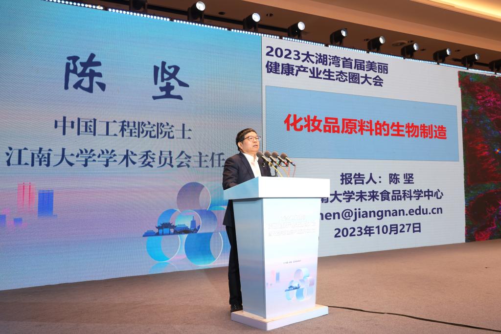 10月27日上午,2023太湖湾首届美丽健康产业生态圈大会暨“江南美湾·梅里古镇”美丽健康产业园开园仪式在无锡举办。中国工程院院士、江南大学校长陈卫,国家药监局原副局长、中国香精香料化妆品工业协会理事长颜江瑛,中国洗涤用品工业协会副秘书长边峰,中国口腔清洁护理用品工业协会副秘书长盛斌,江苏省药品监督管理局二级巡视员张春平,无锡市人民政府副市长卢敏,无锡高新区党工委书记、新吴区委书记崔荣国,江南大学党委常委、副校长倪松涛,江南大学化学与材料工程学院党委书记潘庆伟、院长刘仁,以及无锡市相关部门负责人、全国各地专家学者、企业家、行业机构、江南大学师生代表等500多人出席活动。