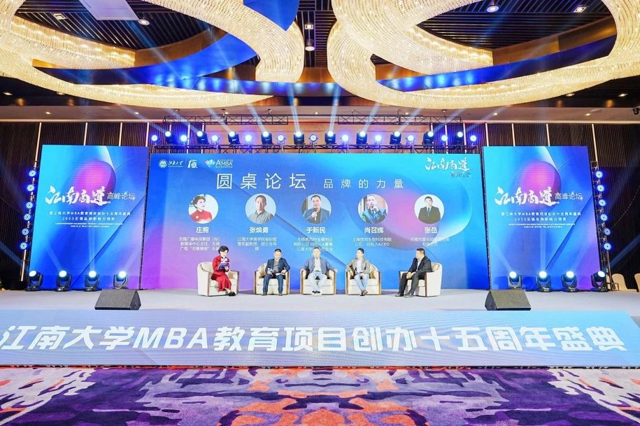 求学问道下江南,登高致远赢未来。11月25日下午,“江南商道”高峰论坛暨江南大学MBA教育项目创办十五周年盛典2023无锡品牌影响力颁奖顺利召开。本次高峰论坛由江南大学商学院、MBA教育中心主办,MBA校友会、MBA联合会、无锡广电集团联合承办。活动邀请了无锡市委常委、统战部部长周常青,江南大学党委书记吴正国,全国MBA教育指导委员会秘书处办公室主任、中国学位与研究生教育学会工商管理工作委员会秘书长王萍,浙江财经大学党委副书记、副校长(主持工作)魏江,江南大学党委常委、统战部部长朱飞等领导出席,来自无锡市发改委、工业与信息化局、无锡广电、江南大学职能部门和相关学院、江南大学各地校友会、兄弟校友会、业内专家、企业高管及商学院师生校友500余人参加了盛会,五万余人在线通过江南大学视频号、无锡博报同步观看活动。