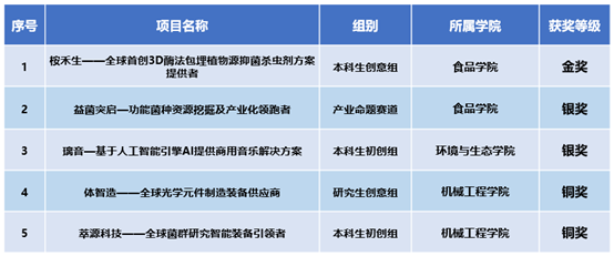 12月3-6日,中国国际大学生创新大赛(2023)全国总决赛在天津大学举办。经过激烈角逐,我校共获得金奖1项、银奖2项、铜奖2项,实现了国赛金奖不断线。获奖项目中,食品学院项目《桉禾生——全球首创3D酶法包埋植物源抑菌杀虫剂方案提供者》获高教主赛道金奖、《益菌突启—功能菌种资源挖掘及产业化领跑者》获产业赛道银奖,环境与生态学院项目《璃音—基于人工智能引擎AI提供商用音乐解决方案》获高教主赛道银奖。