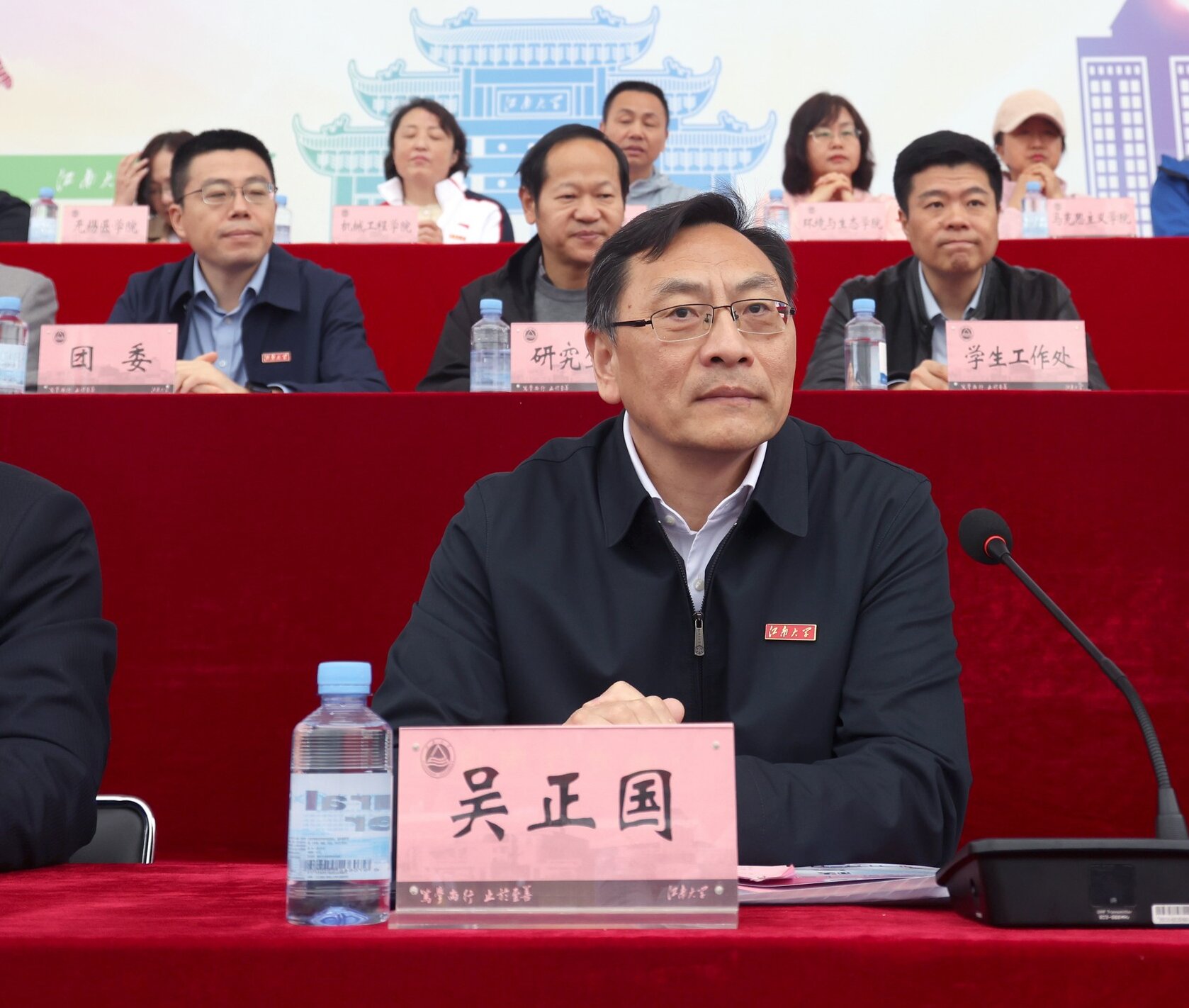 在庄严的升旗仪式后,吴正国致开幕词。他指出体育是落实立德树人根本任务的基础性工程,青年要实现报效祖国的宏伟志向、老师要潜心教书育人的伟大事业,首要条件就是要有健康的体魄,希望大家在体育锻炼中享受乐趣、增强体质、健全人格、锤炼品性,比学赶超勇争先,团结奋斗向未来,把体育运动的激情转化为推动学校事业高质量发展的热情,在“教育强国、江南何为”的奋进实践中“争金夺银”。