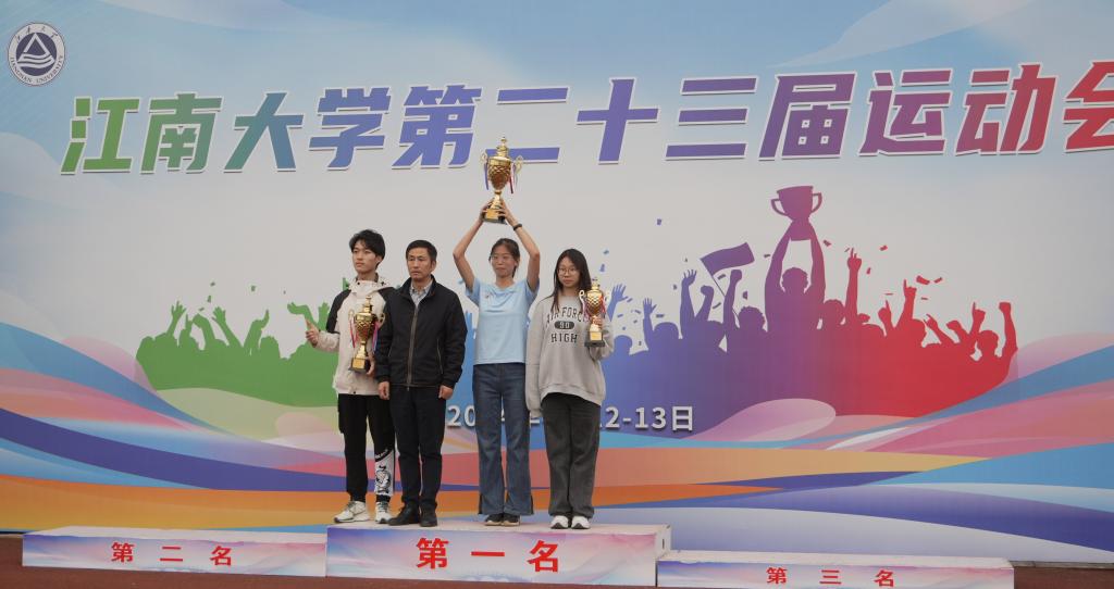 师生们在赛场上各显身手,展现强健体魄,尽显江南风采。经过两天的激烈角逐,商学院、机械工程学院和食品学院分获学生组团体总分前三名;后勤、机关和商学院分获教工组团体总分前三名。化学与材料工程学院陈丹萍、机械工程学院杨钧婷双双打破女子100米栏校运会赛会记录,食品学院宋丽瑶打破女子3000米校运会赛会记录,商学院张泽鹏打破男子3000米校运会赛会记录,四名同学均为校田径运动队队员。