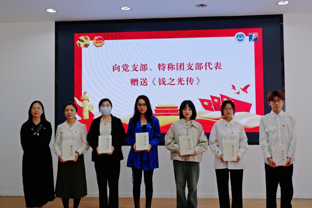 仪式上,与会人员共同观看“党史中的廉政故事”《钱之光:政以洁己 奉公为先》视频,走进钱之光同志波澜壮阔的一生,领悟新中国纺织工业奠基人的精神品质和实干报国的家国情怀。张菁燕代表学院党委发布“学习习近平文化思想 探寻江南纺织精神”主题教育方案,她从学好习近平文化思想这一创新理论、用好红色党史这一宝贵资源、守好党规党纪这一行动戒尺、弘扬好“江南纺织”这一精神力量四个维度进行解读,并就主题教育进度安排作具体部署。吴垚宣读校团委《关于同意纺织科学与工程学院分团委成立“钱之光”特称团支部的批复》,并向纺织2202和纺织2301团支部授旗;周雪晖向师生党支部、特称团支部赠送《钱之光传》。