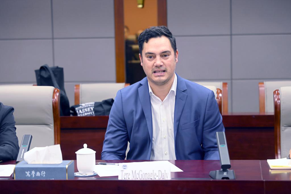 Tere McGonagle-Daly发表讲话。他对江南大学的热情接待表达了感谢,并指出江南大学对于梅西大学来说,是非常重要的合作伙伴。希望两校未来不断深化合作,共同推动更多领域的合作与发展。