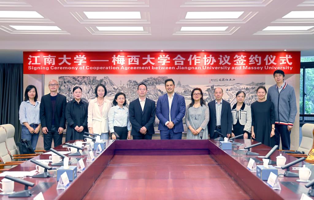 随后,堵国成与Tere McGonagle-Daly分别代表双方学校共同签署了江南大学—梅西大学合作备忘录,以及设计学科学生联合培养合作协议。设计学院院长魏洁、梅西大学创意艺术学院院长Sven Mezhoud线上线下合作,见签了设计学科学生联合培养协议。两校达成共识,在食品、设计等多学科领域进一步拓展全方位深度合作。