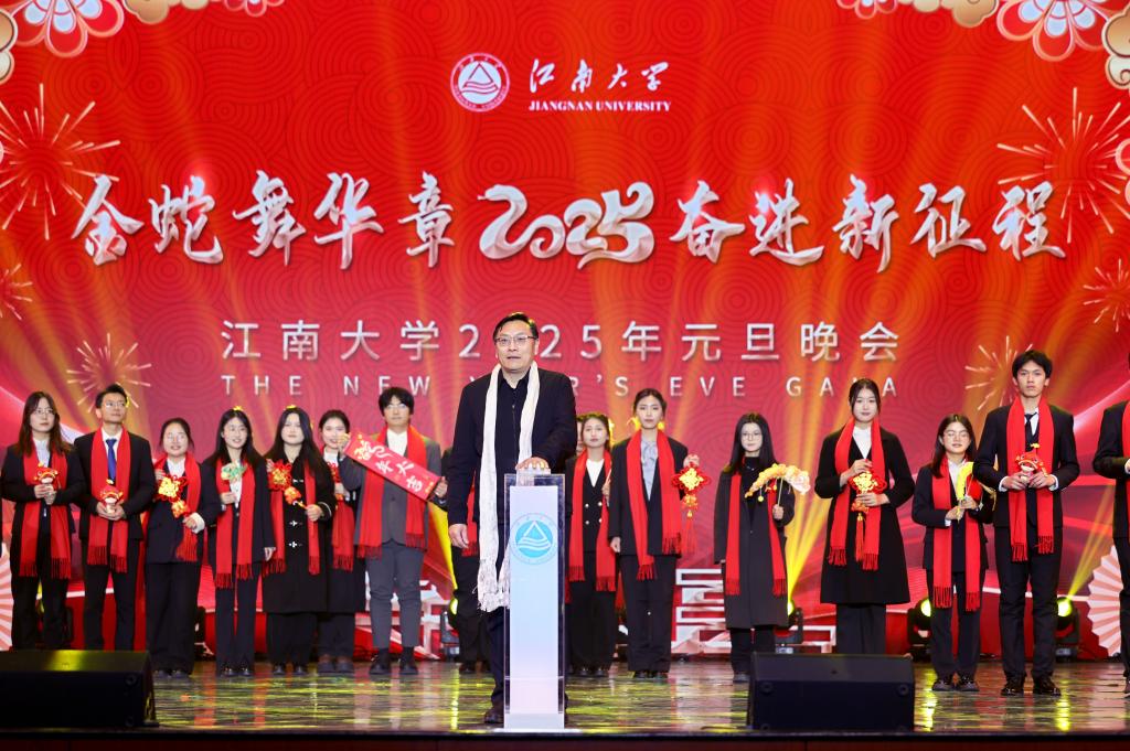 12月30日晚,“金蛇舞华章,奋进新征程”江南大学2025年元旦晚会在文浩馆隆重举办。校党委书记吴正国,党委副书记倪松涛,党委副书记、纪委书记李旸,相关职能部门领导、各学院师生代表,近千人共同参加了此次盛会,用歌声和祝福迎接新一年的到来。