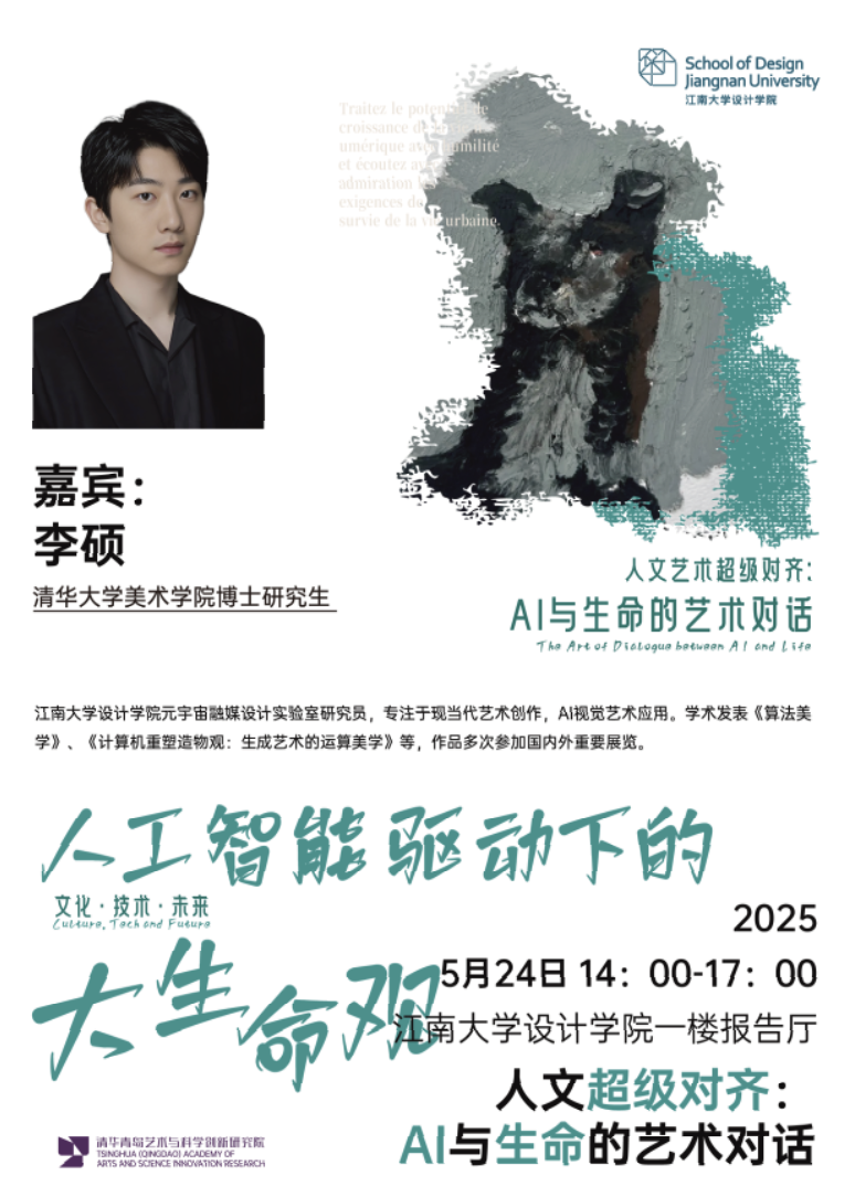 “AI与生命的艺术对话公益展暨学术论坛”系列活动由江南大学设计学院、清华青岛艺术与科学创新研究院和无锡江南大悦城共同主办。