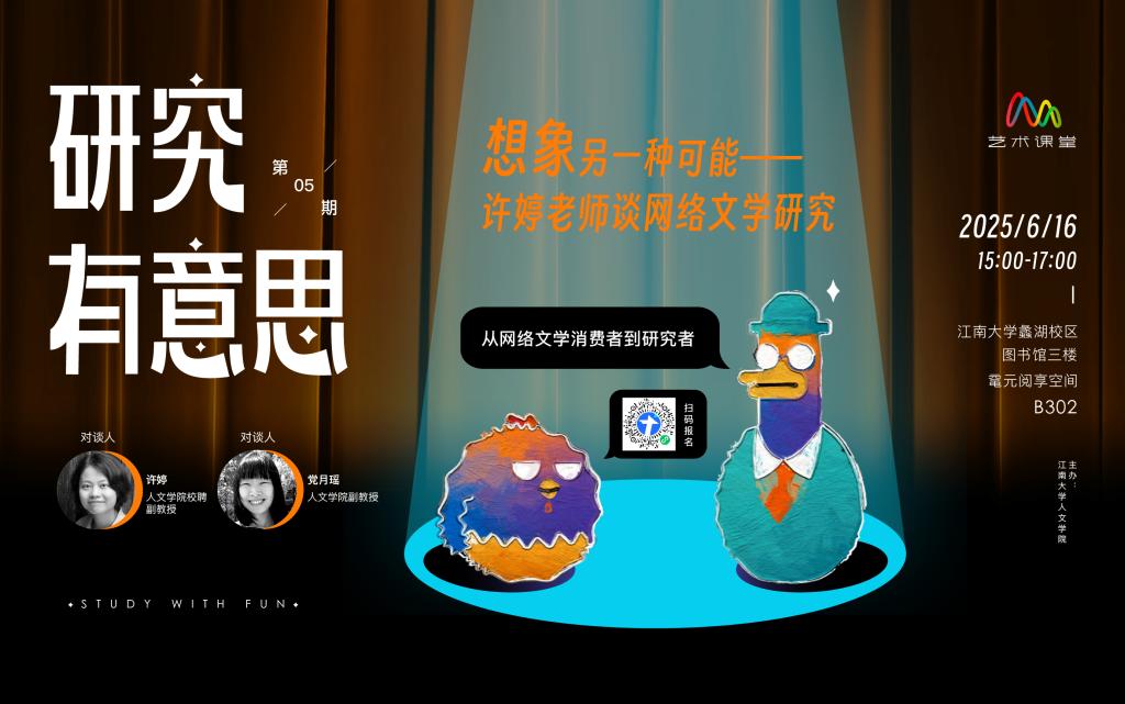 《研究有意思》第五期《想象另一种可能——许婷老师谈网络文学研究》从许老师最新的网络文学研究成果谈起。从长篇网文到短篇网文再到短剧,“真假千金”这一经典套路在不同媒介形态中经历了叙事模式、人物设定和主题内涵的演变。长篇网文注重复杂情节和情感渲染,短篇网文追求高效叙事和情绪刺激,短剧则通过碎片化的快感单元迎合快节奏消费。网文题材的演变不仅反映了媒介技术的影响,也映射了当下生活场域中人们对家庭关系、自我认同和经济权力的深层焦虑。而借助跨媒介分析,以网络文艺为载体,不失为对社会心理的有效捕捉与重构。成长于网络时代,深谙网络社群的种种运行机制,从网络文学的消费者,到矢志于此的研究者,这是漫长的准备还是起心动念于一刹?网络文学与传统文学是交锋还是开拓?网络文学研究是传统文学研究的边界扩展还是全新的范式与路径?研究如何与真实的日常生活发生关联,而日常生活又如何成为研究意义的基石?许婷老师和党月瑶老师将为大家带来对谈。