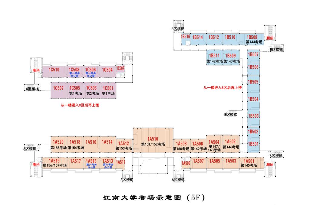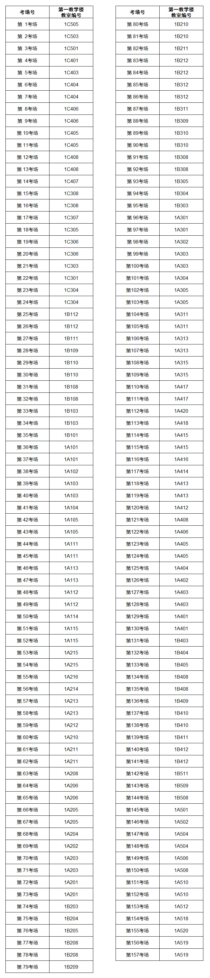 请考生根据准考证上考场号在索引表中查找考场对应的教室编号,并根据下方考场示意图提前熟悉考场位置。