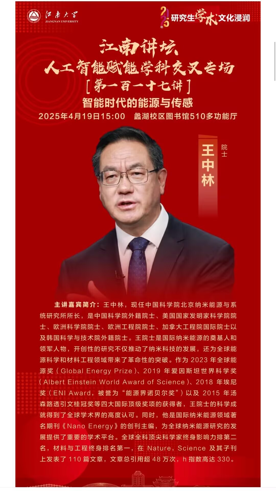 王中林,现任中国科学院北京纳米能源与系统研究所所长,是中国科学院外籍院士、美国国家发明家科学院院士、欧洲科学院院士、欧洲工程院院士、加拿大工程院国际院士以及韩国科学与技术院外籍院士。王院士是国际纳米能源的奠基人和领军人物,开创性的研究不仅推动了纳米科技的发展,还为全球能源科学和材料工程领域带来了革命性的突破。作为2023年全球能源奖(Global Energy Prize)、2019年爱因斯坦世界科学奖(Albert Einstein World Award of Science)、2018年埃尼奖(ENI Award,被誉为“能源界诺贝尔奖”)以及2015年汤森路透引文桂冠奖等四大国际顶级奖项的获得者,王院士的科学成就得到了全球学术界的高度认可。同时,他是国际纳米能源领域著名期刊《Nano Energy》的创刊主编,为全球纳米能源研究的发展提供了重要的学术平台。