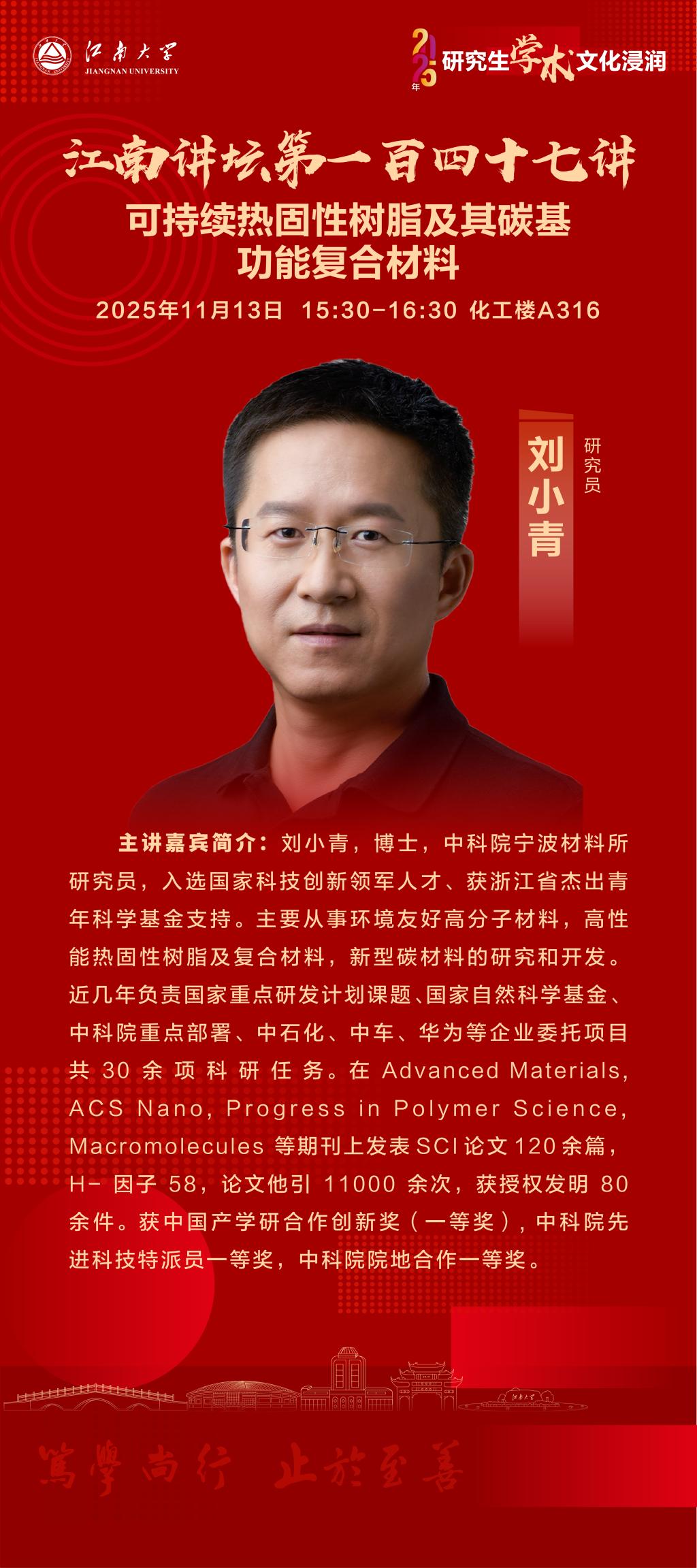 讲座地点:蠡湖校区化学与材料工程学院A316