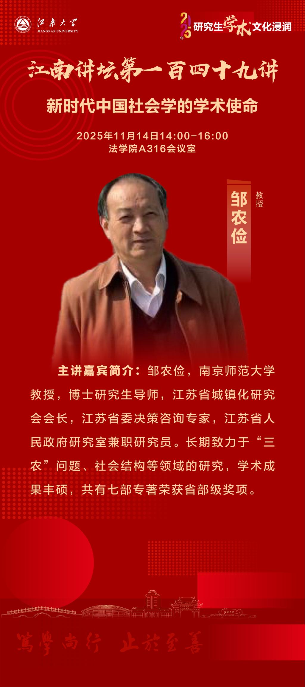 邹农俭,南京师范大学教授,博士研究生导师,江苏省城镇化研究会会长,江苏省委决策咨询专家,江苏省人民政府研究室兼职研究员。长期致力于“三农”问题、社会结构等领域的研究,学术成果丰硕,共有七部专著荣获省部级奖项。